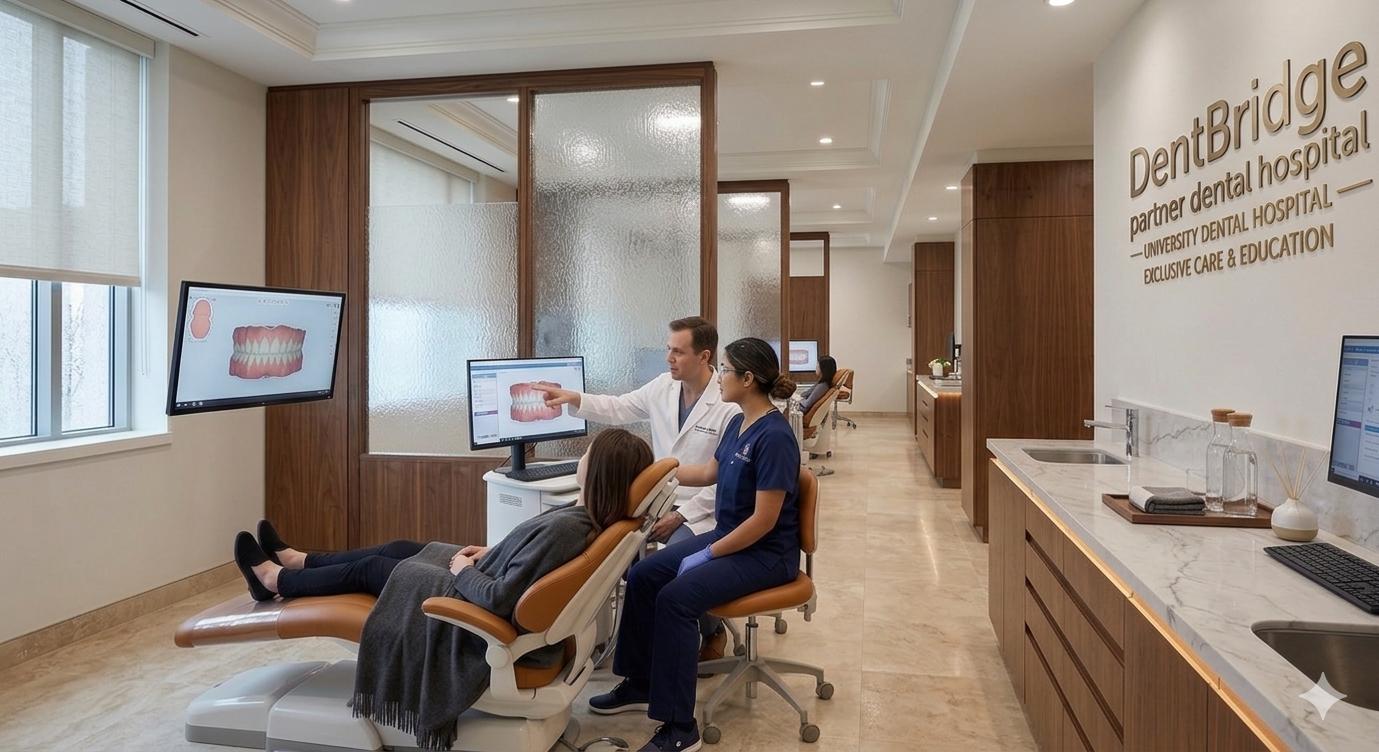 DentBridge helps patients access affordable dental care through a faculty-reviewed process that matches them with senior dental students under supervision.